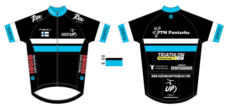 UP:n ajoasut toimittaa Fibra. Mallistossa on tuotteita kahdesta eri tuoteryhmästä Elite ja Pro (tiukempi mitoitus). Yleisön pyynnöstä olemme pitäneet mallistossa kahta eri väriä miesten paidoissa, musta (Elite) ja sininen (Elite/ Pro) ja myös naisille löytyy oma paitamalli.
